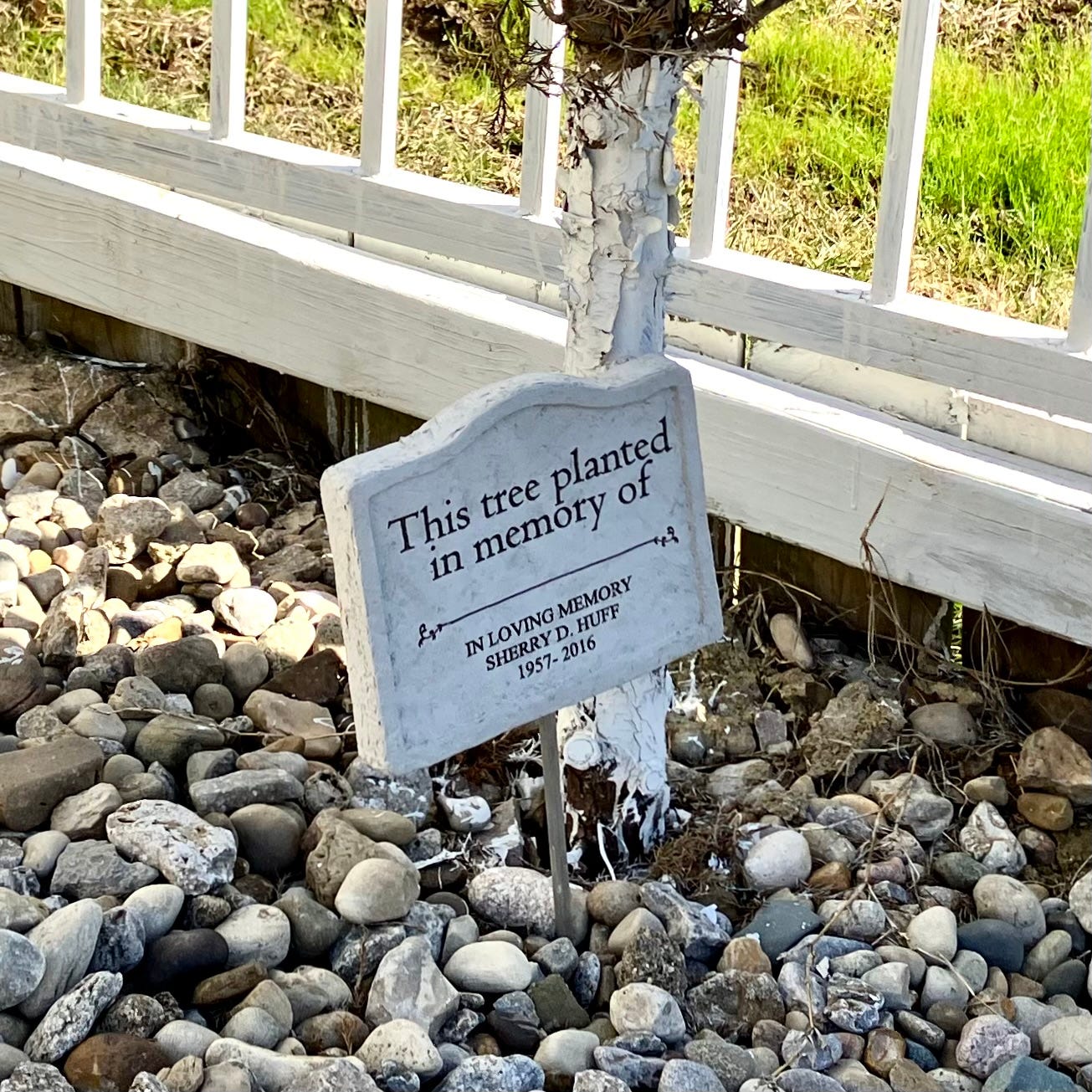 In one corner of my father’s backyard is a small rock garden shaded by a young cedar tree. My sister Sherry’s ashes are buried beneath the tree, per her wishes. A plaque engraved with her name, birth, and death years on it leans against the base.